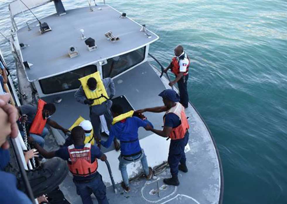 Haitians found at sea aboard a 40- foot vessel are brought aboard a Coast Guard cutter on Dec. 22, 2020. - U.S. COAST GUARD/U.S. COAST GUARD/TNS
