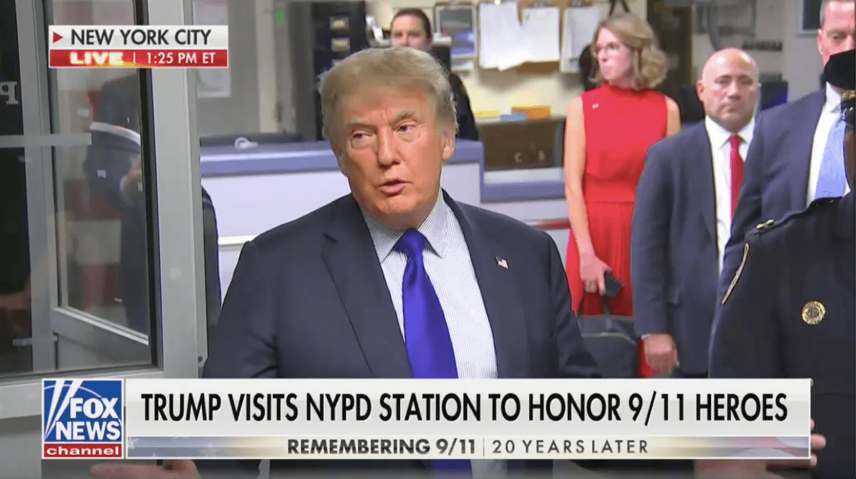 Late Saturday, Fox News cut away from an appearance by Donald Trump at a New York Police Department event where he was making comments about the 20th anniversary of the 9/11 attack where he also asserted that the 2020 election was stolen from him.
