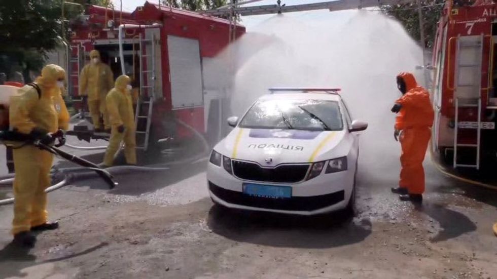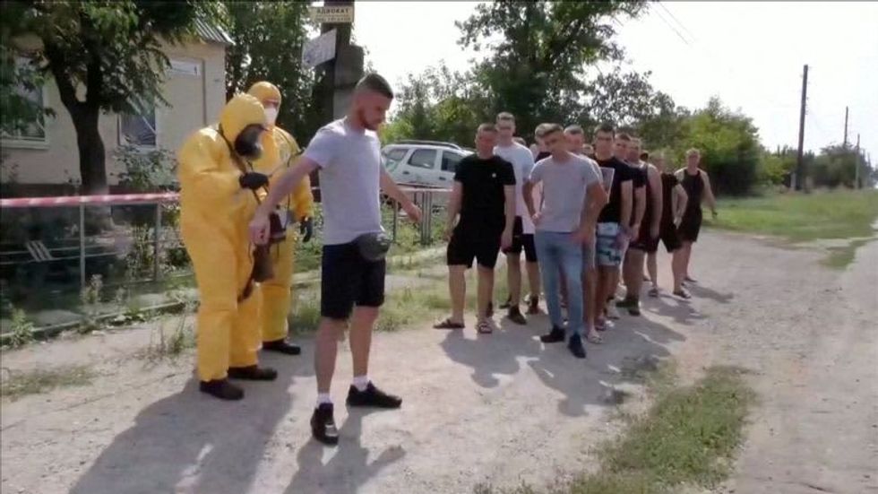 A video released by the regional administration showed workers in protective suits and breathing masks using radiation detecting devices on cars and people.