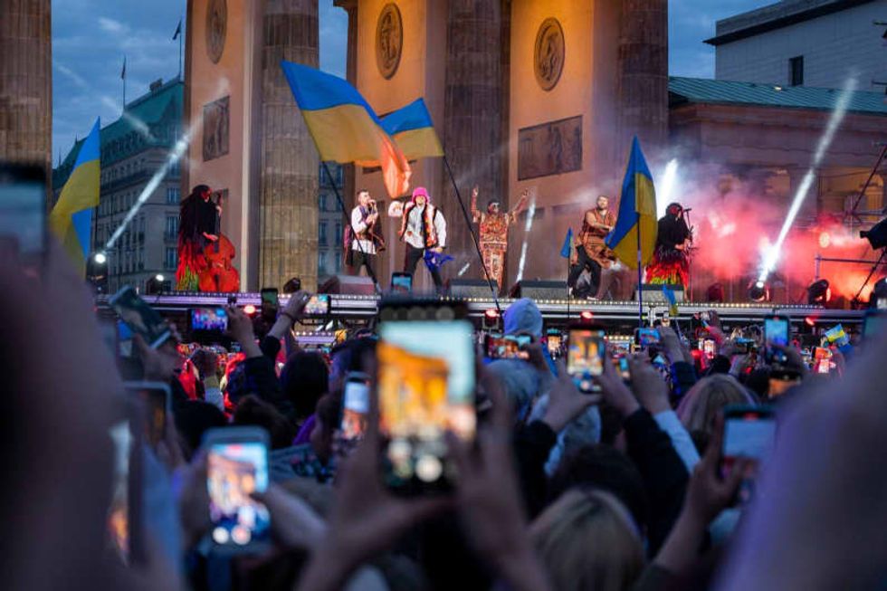 During a charity concert in Berlin on Sunday, the band's frontman Oleh Psiuk also raffled off his signature pink bucket hat, with all proceeds donated to the Ukrainian army.
