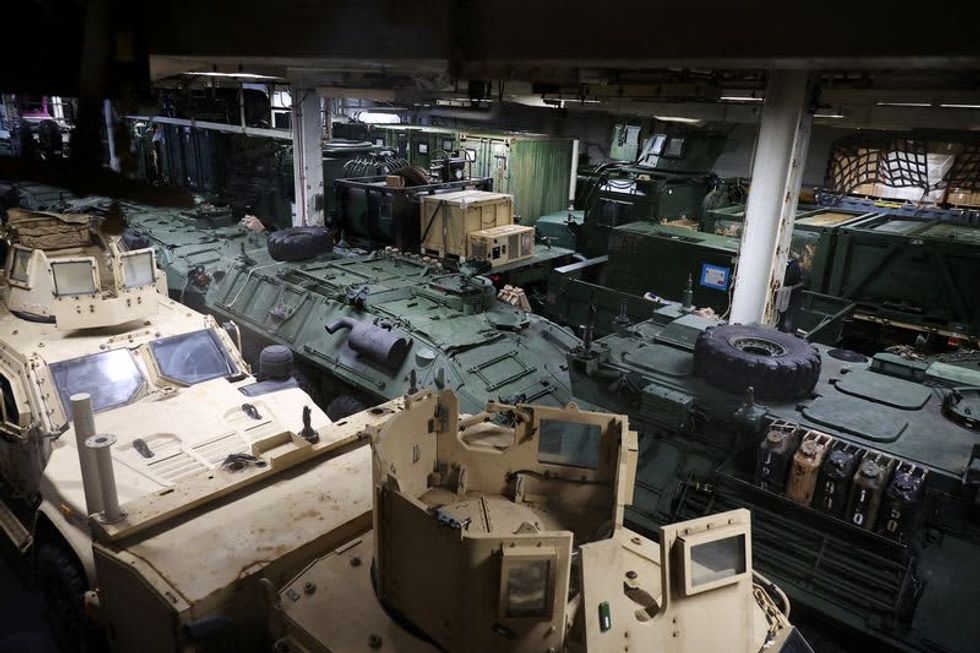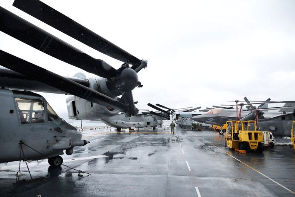 The Makin Island carries 10 F-35 stealth fighters in addition to dozens of armoured vehicles. The ship's welldeck, which can be flooded to provide direct access to the sea, allows it to launch and recover landing craft and other amphibious vehicles, the U.S. military said.