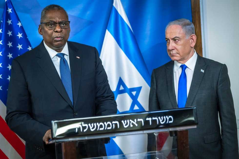U.S. Secretary of Defense Lloyd Austin (L) and Israeli Prime Minister Benjamin Netanyahu hold a joint press conference following their meeting in Tel Aviv. Chad Mcneeley/Dod/Planet Pix via ZUMA Press Wire/dpa